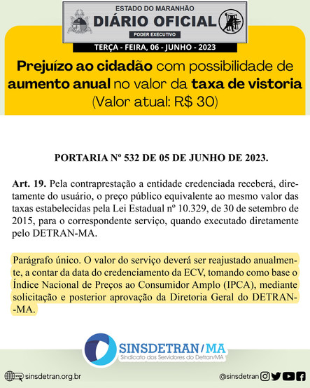 Trata-se de novo ardil, cuja finalidade é burlar o Termo de Ajustamento de Conduta (TAC) firmado com o Ministério Público do Trabalho do Maranhão, o qual ensejou a Ação Civil Pública nº 0017400-06.2010.5.16.0002. Uma das cláusulas do TAC define a criação do cargo de vistoriador veicular e realização do concurso público.