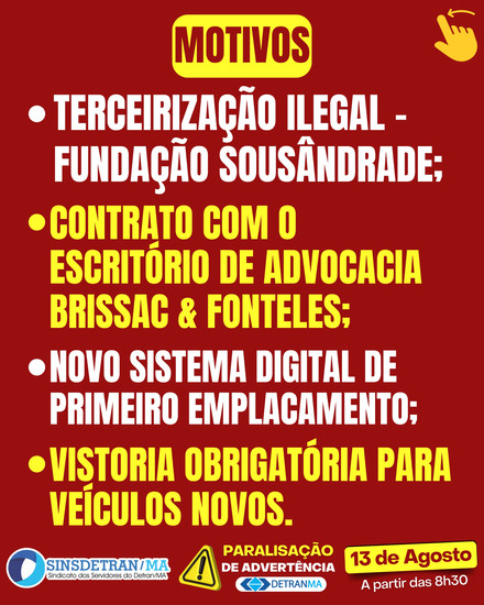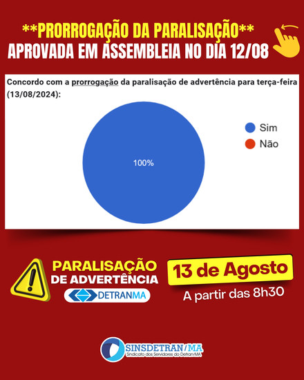 A paralisação continuará hoje (13/08), a partir das 8h30, em todo o Maranhão, por decisão dos participantes da assembleia.
