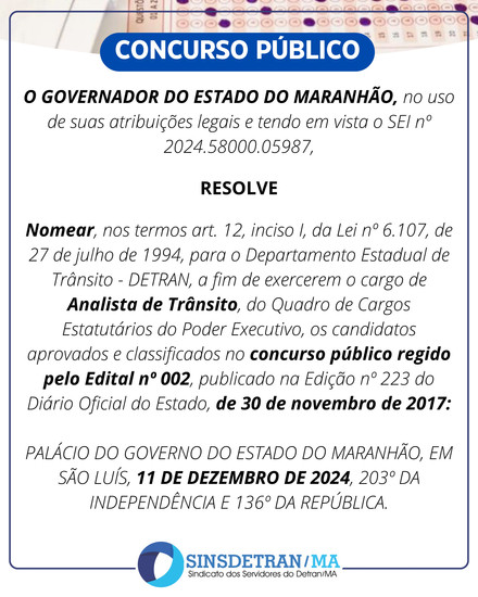 NOMEAÇÃO - Publicada lista com 21 novos servidores para o Detran/MA